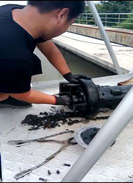 在檢修過程中,機修人員不怕臟、不嫌臭,直接下手將堵塞物、葉輪纏繞物一一清理出來,完美詮釋了污水人“一絲不茍、精益求精”的工作作風和優良傳統。正是有這么一群可愛的人,在平凡的崗位默默奉獻,才保證了污水系統各個環節設備設施的正常運行,進而保證了出水水質的穩定達標(張曉偉)。