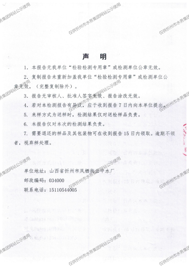 忻州城區公共供水水源水、出廠水、管網水、管網末梢水2025年5月份水質信息公示