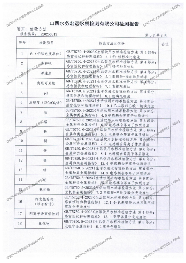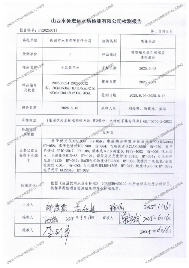 忻州城區公共供水水源水、出廠水、管網水、管網末梢水2025年6月份水質信息公示