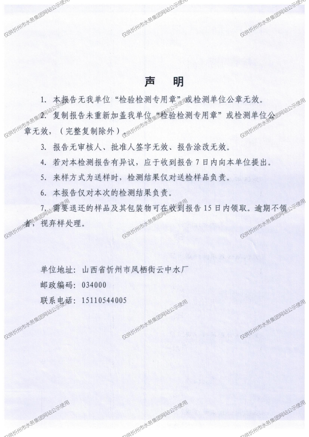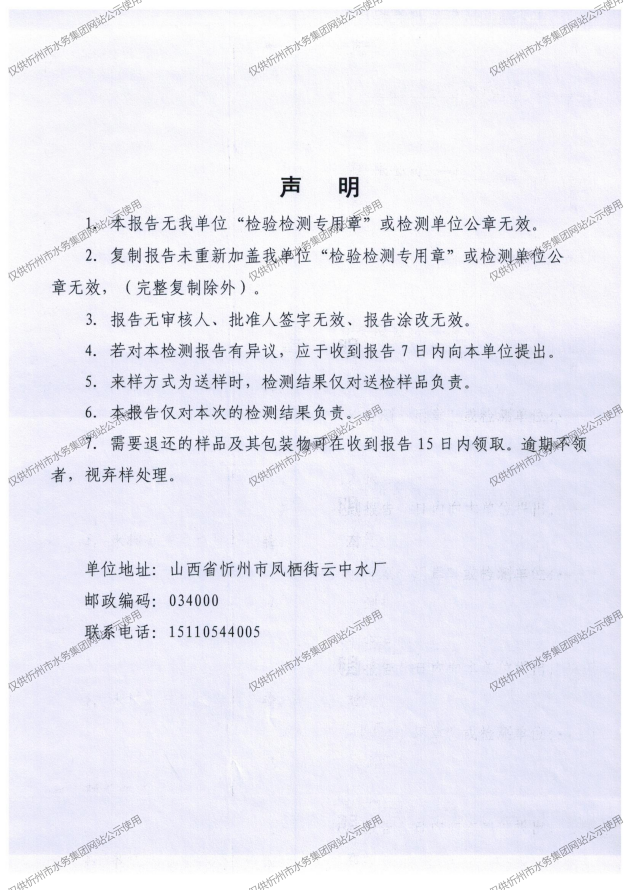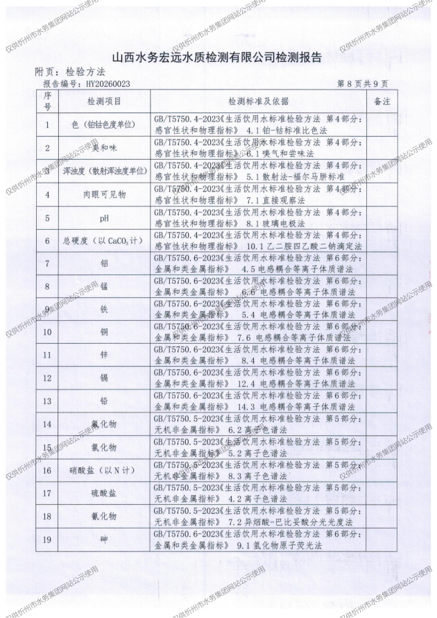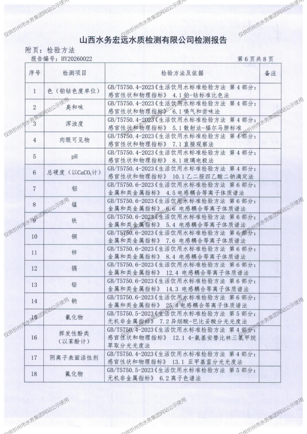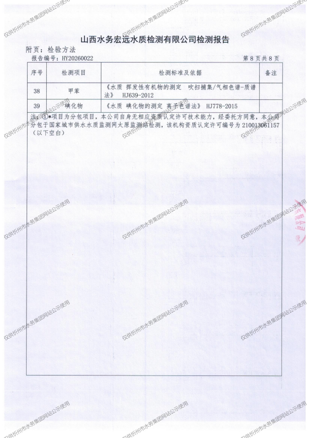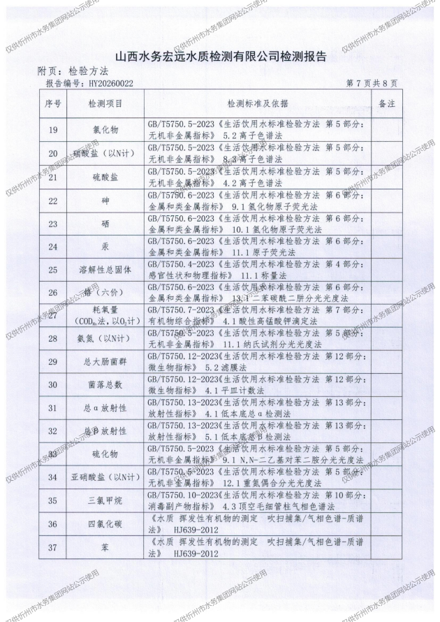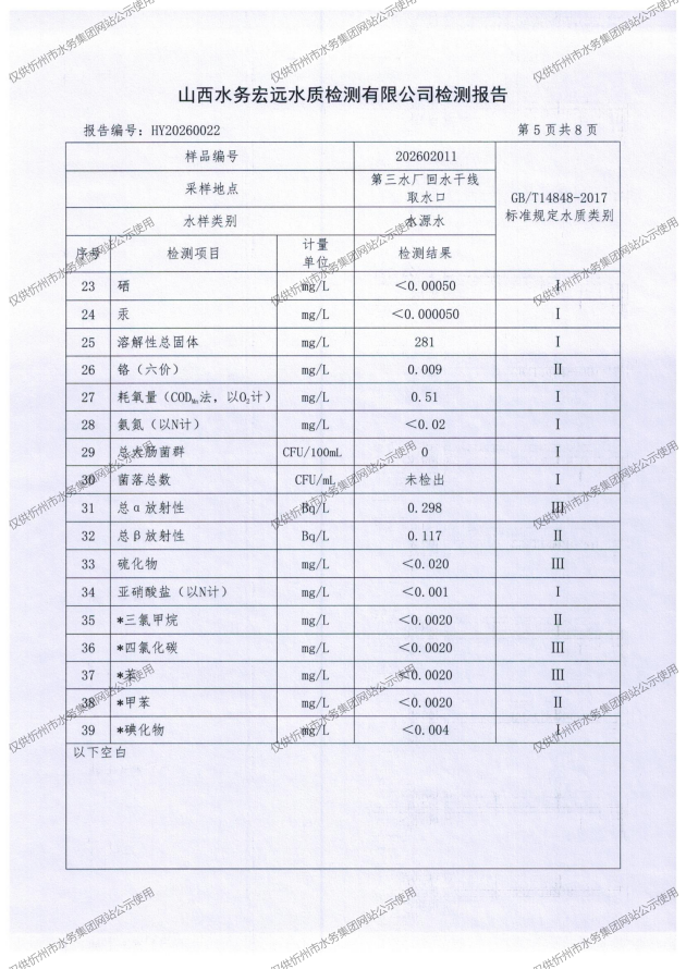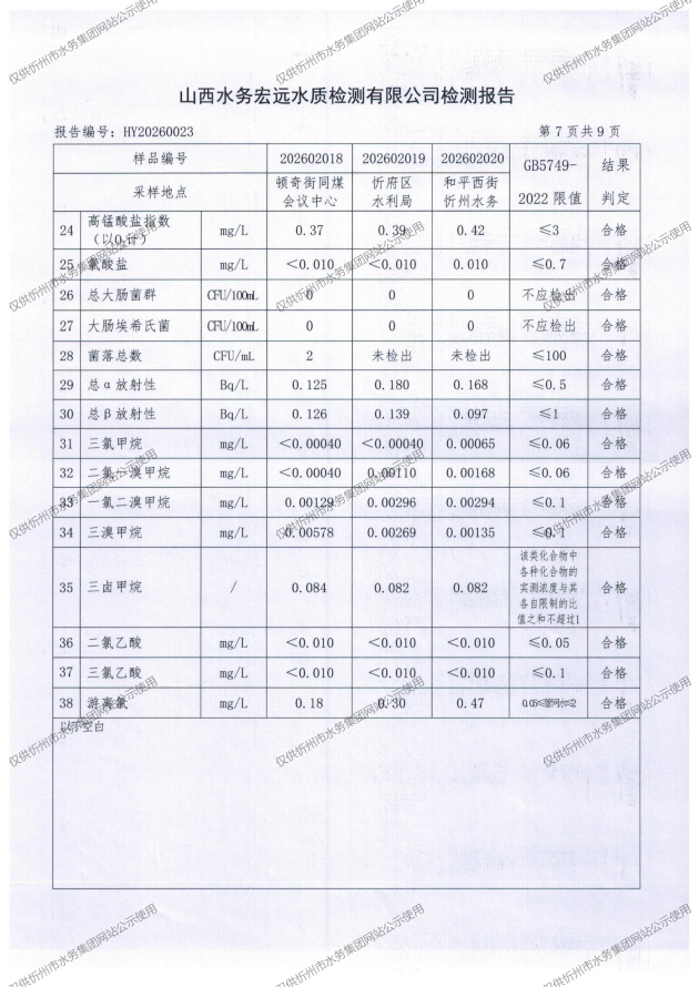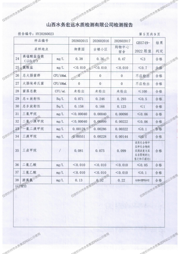 忻州城區(qū)公共供水水源水、出廠水、管網水、管網末梢水2026年2月份水質信息公示