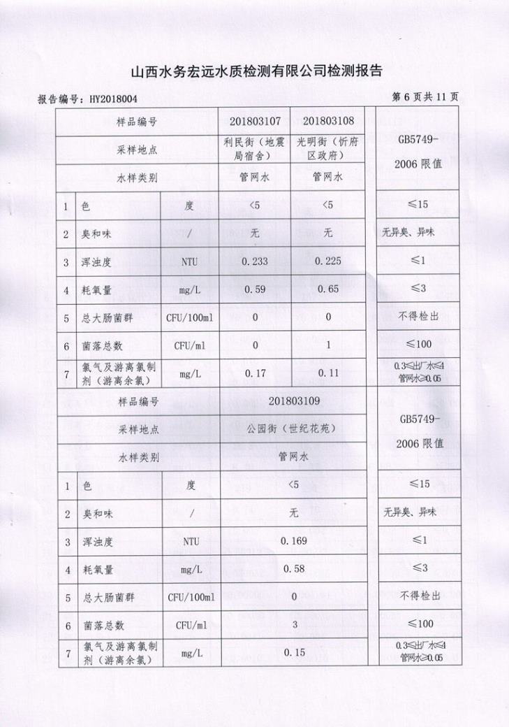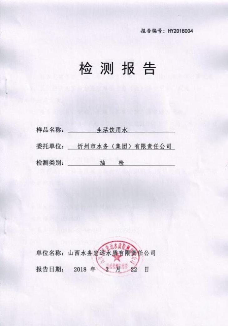 忻州城區公共供水水源水、出廠水、管網水、管網末梢水2018年3月份水質信息公示