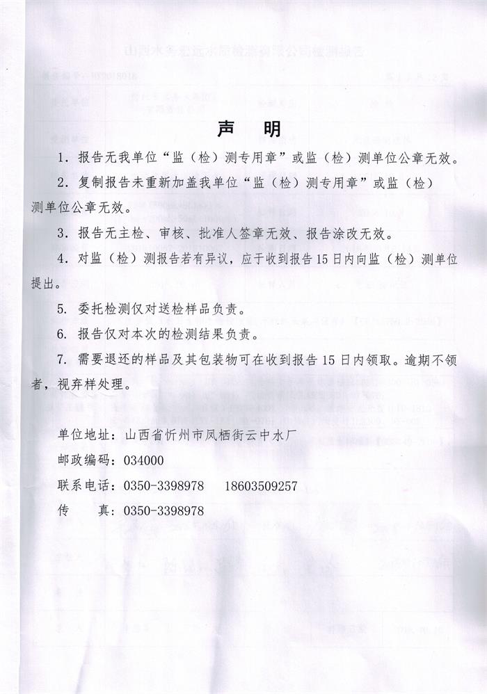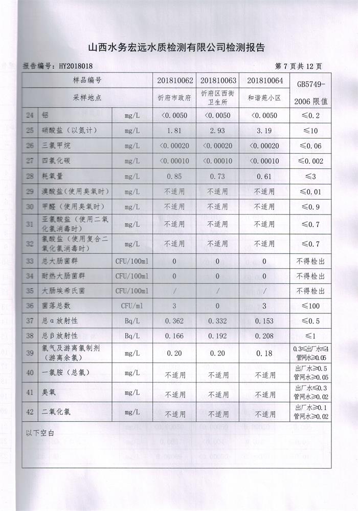 忻州城區(qū)公共供水水源水、出廠水、管網(wǎng)水、管網(wǎng)末梢水2018年10月份水質(zhì)信息公示