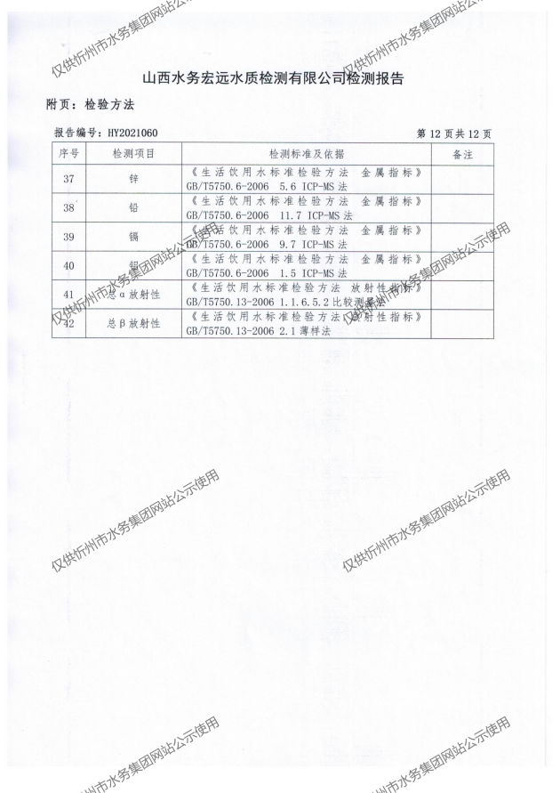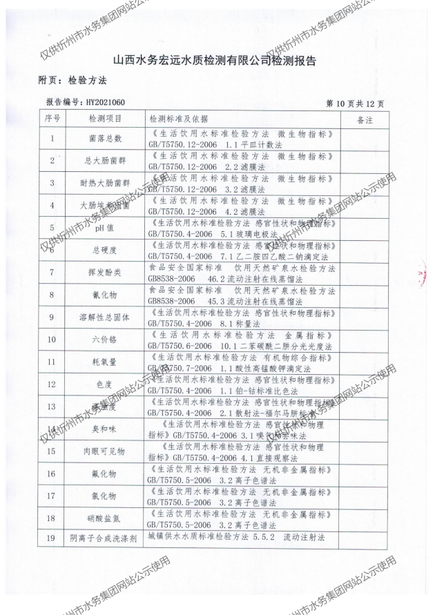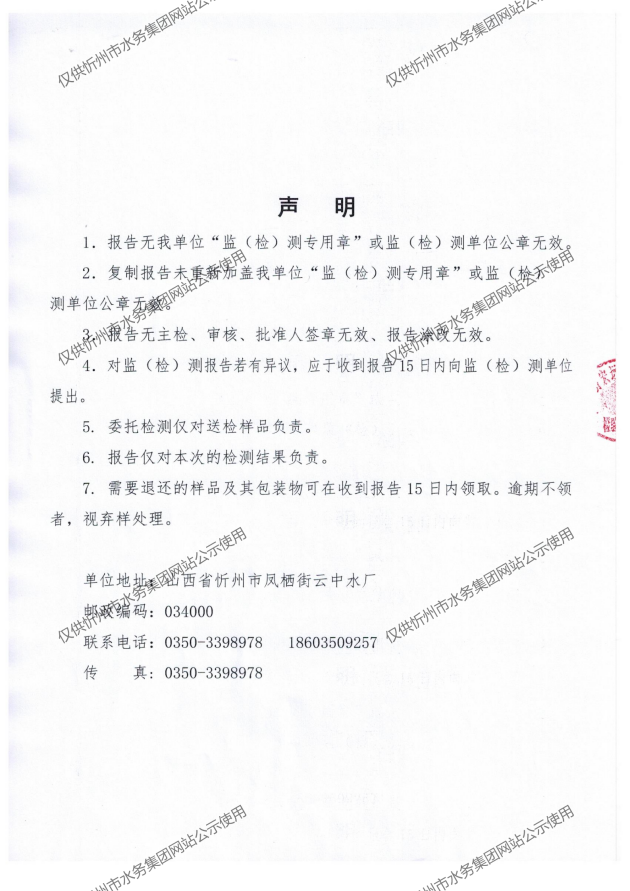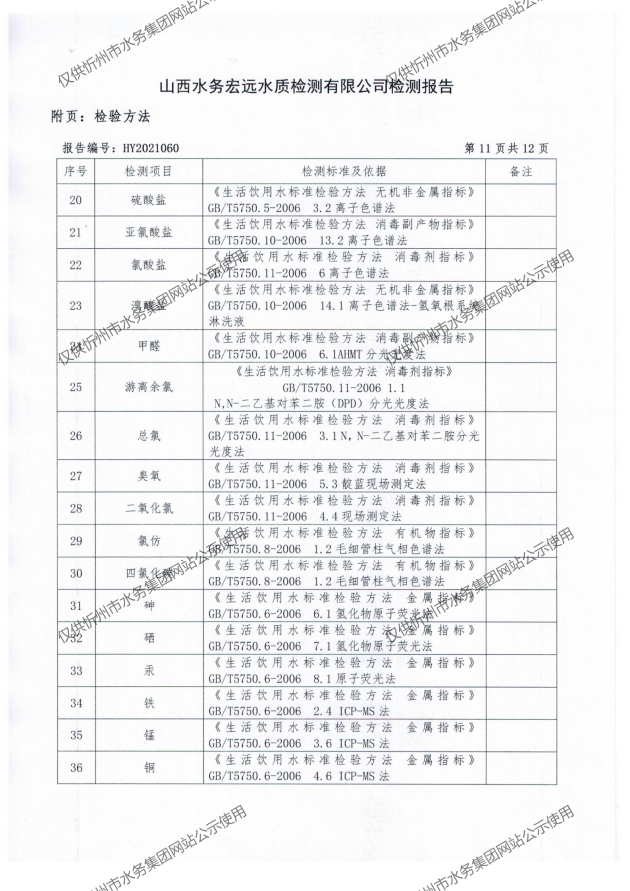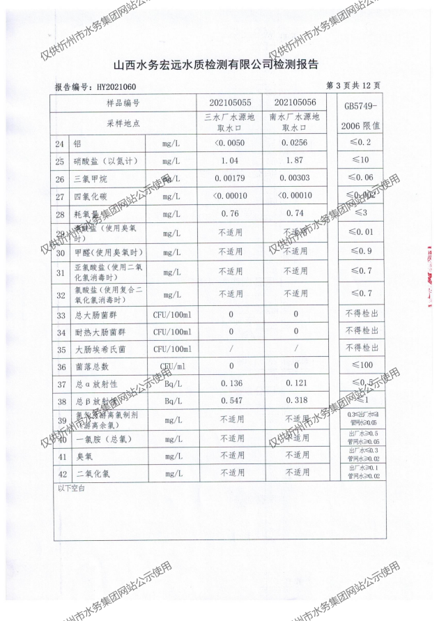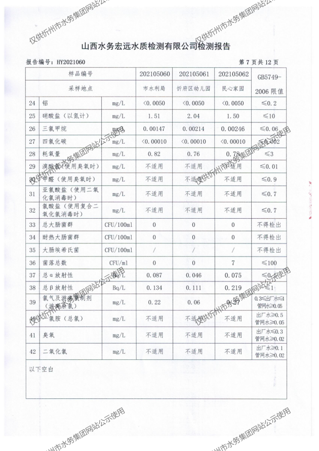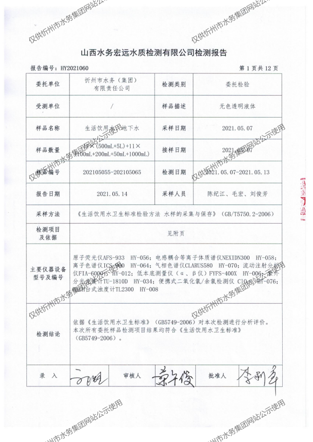 忻州城區公共供水水源水、出廠水、管網水、管網末梢水2021年5月份水質信息公示