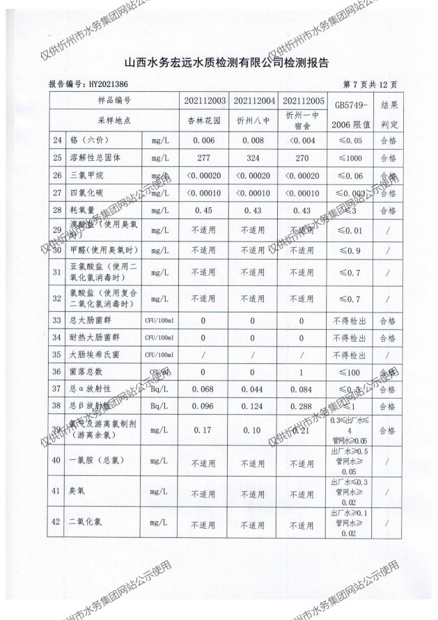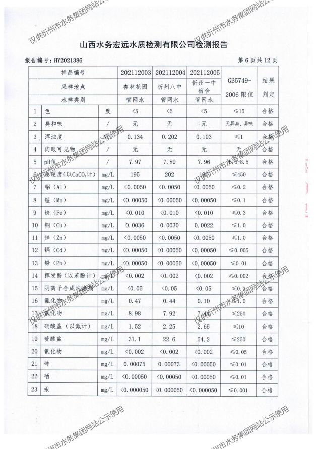 忻州城區(qū)公共供水水源水、出廠水、管網(wǎng)水、管網(wǎng)末梢水2021年12月份水質(zhì)信息公示